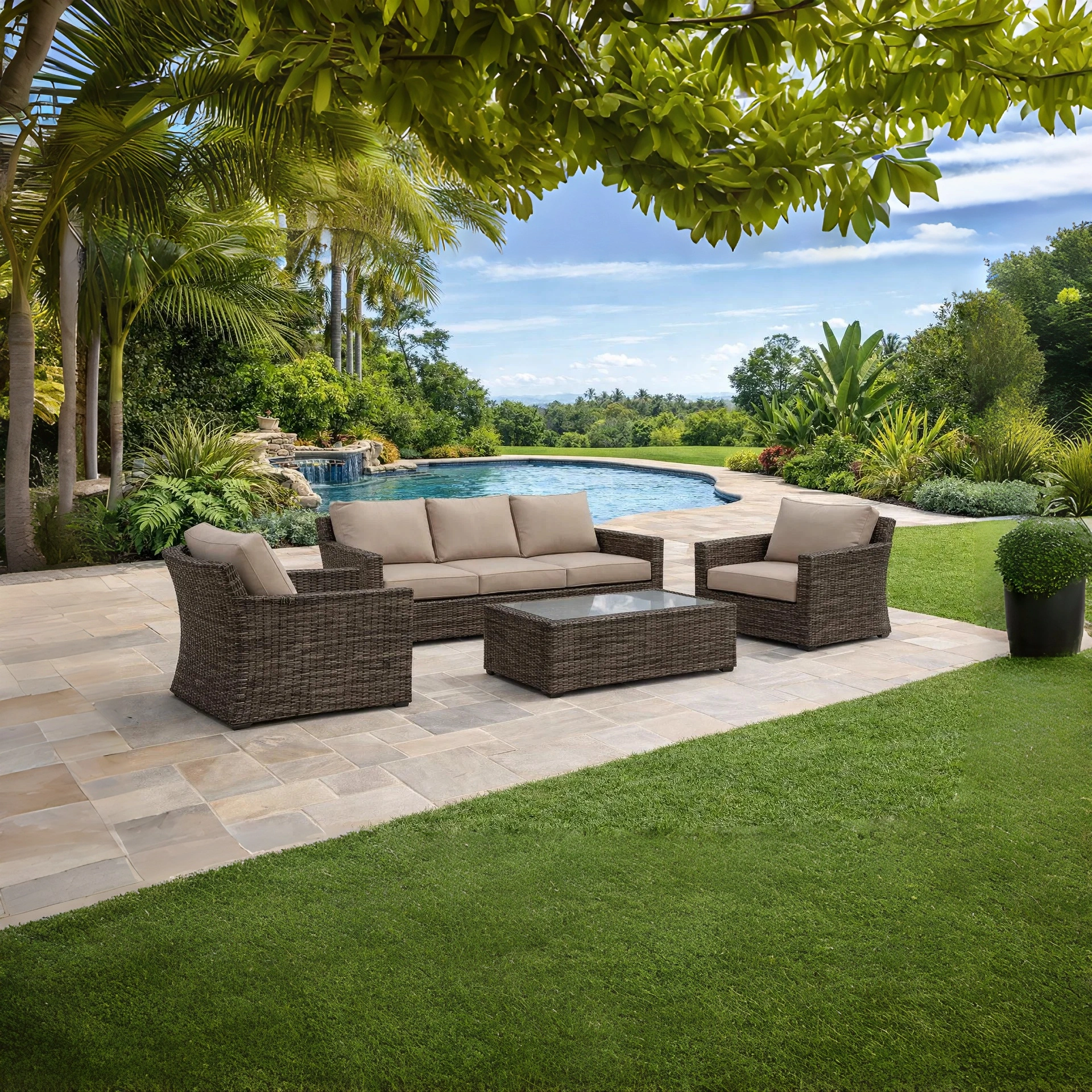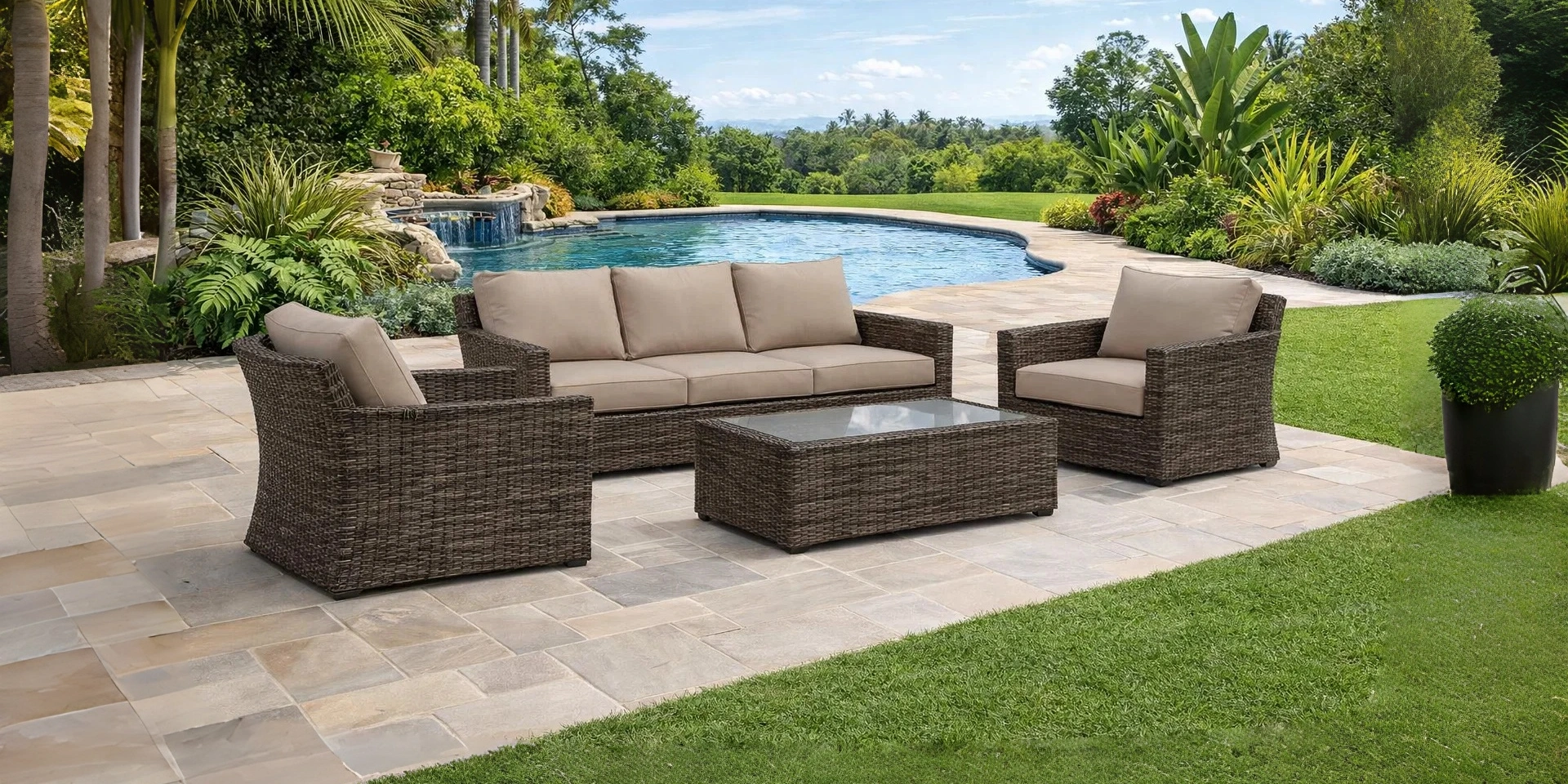 Tumbona de aluminio y ratán sintético con cojines de poliéster beige